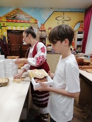 После того, как пряники вынули из печи, покрыли глазурью и упаковали в красивые фирменные коробочки, каждый без труда нашел изготовленный своими руками пряник! Коробки с пряниками уложили в специальные пакеты и раздали участникам мастер-класса.