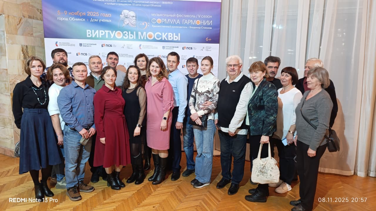 С 5 по 9 ноября в Обнинске прошёл концерт в честь 80-летия Победы в Великой Отечественной войне в рамках V сезона музыкального фестиваля камерного оркестра «Виртуозы Москвы» «Формула гармонии». Мероприятие состоялось при поддержке президента Национального исследовательского центра «Курчатовский институт» Михаила Валентиновича Ковальчука. 8 ноября гостями концерта стали сотрудники Института физики высоких энергий (ИФВЭ).